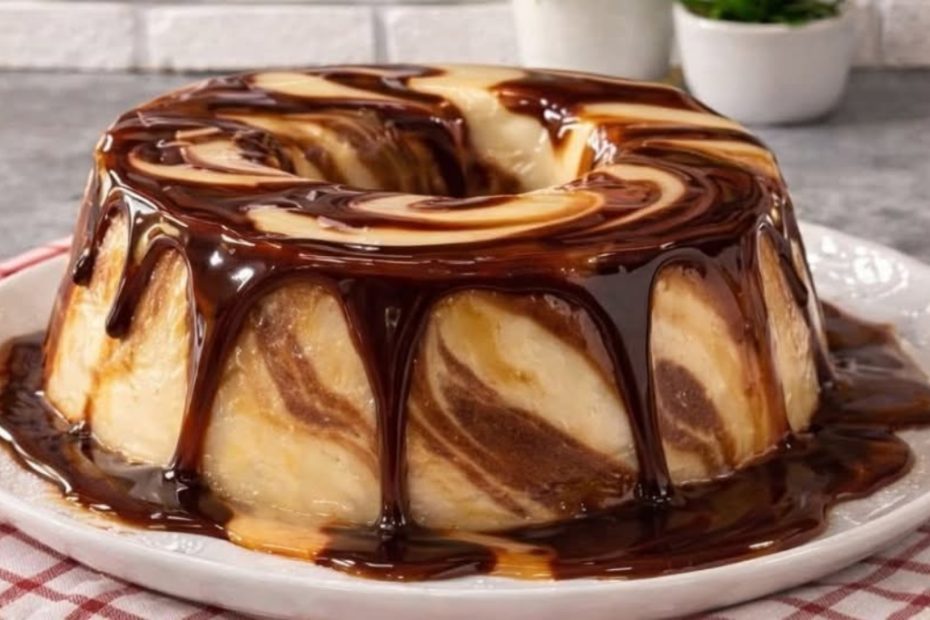 Pudim mesclado de ninho com chocolate